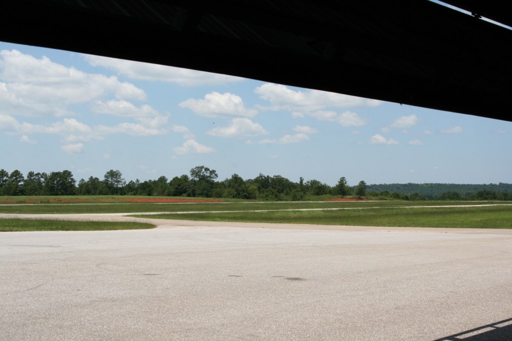 The runway view from one of the hangars