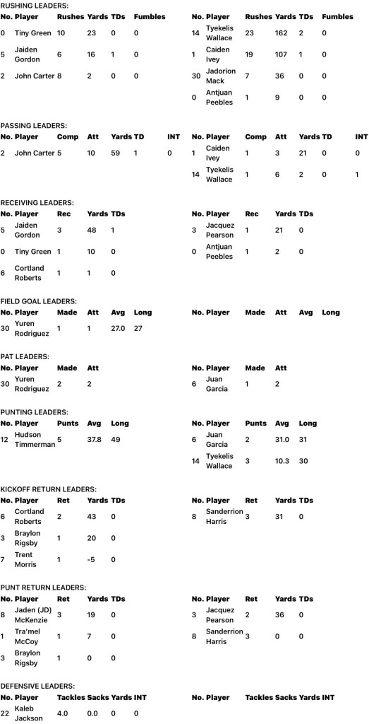 Tallassee managed just 100 yards of total offense but built a 17-6 third-quarter lead after Jaiden “J-Man” Gordon’s TD run of four yards. Gordon was also on the receiving end of John Carter’s 30-yard scoring pass in the second quarter. Gordon has a team-leading eight touchdowns this season.