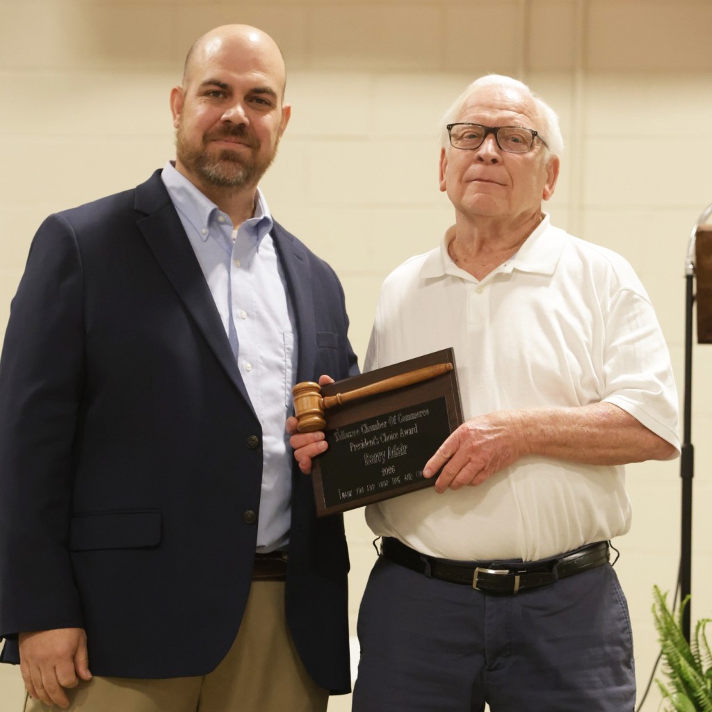 Chamber president Dustin Funderburk gave the President’s Choice Award to Barry Adair, executive director of A.C.T.S.