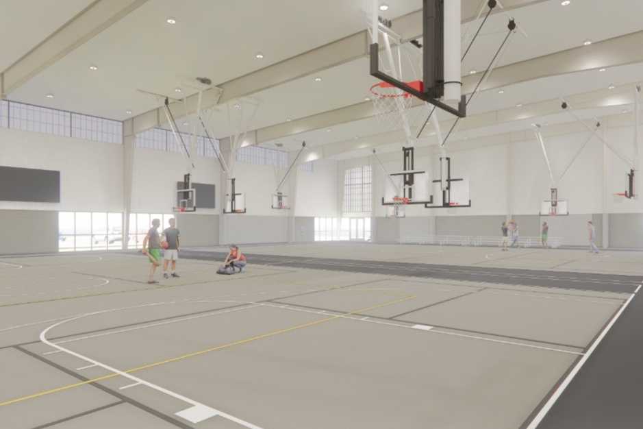 The new gymnasium will expand from one basketball court to two full-size courts.